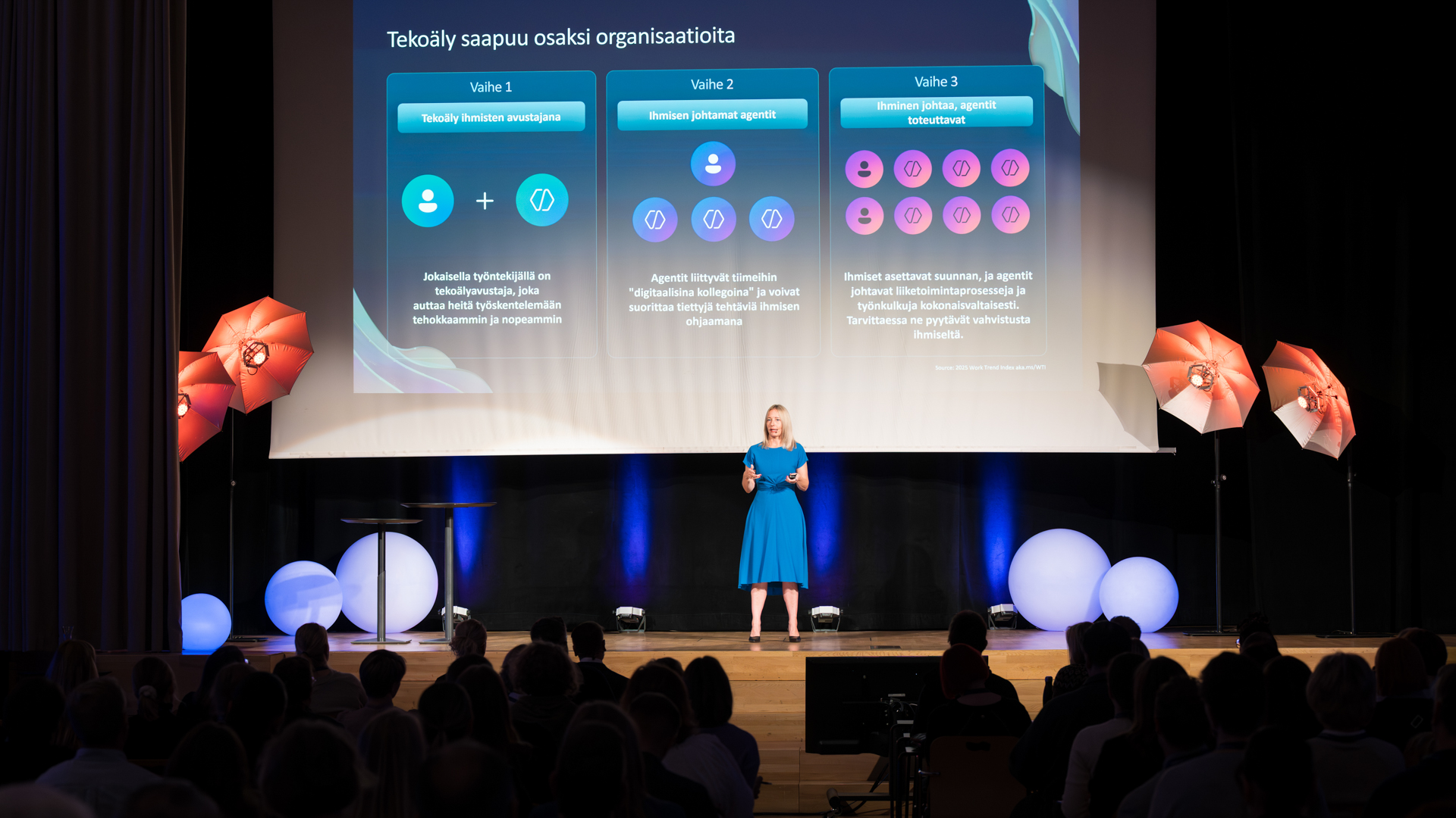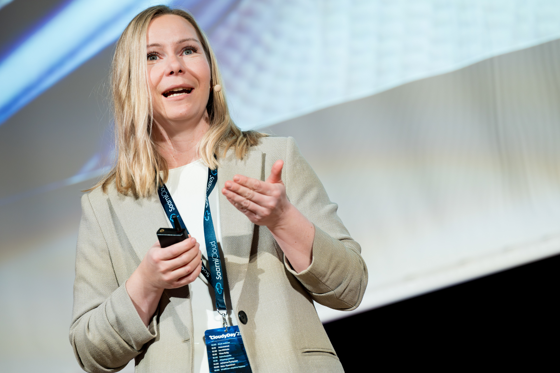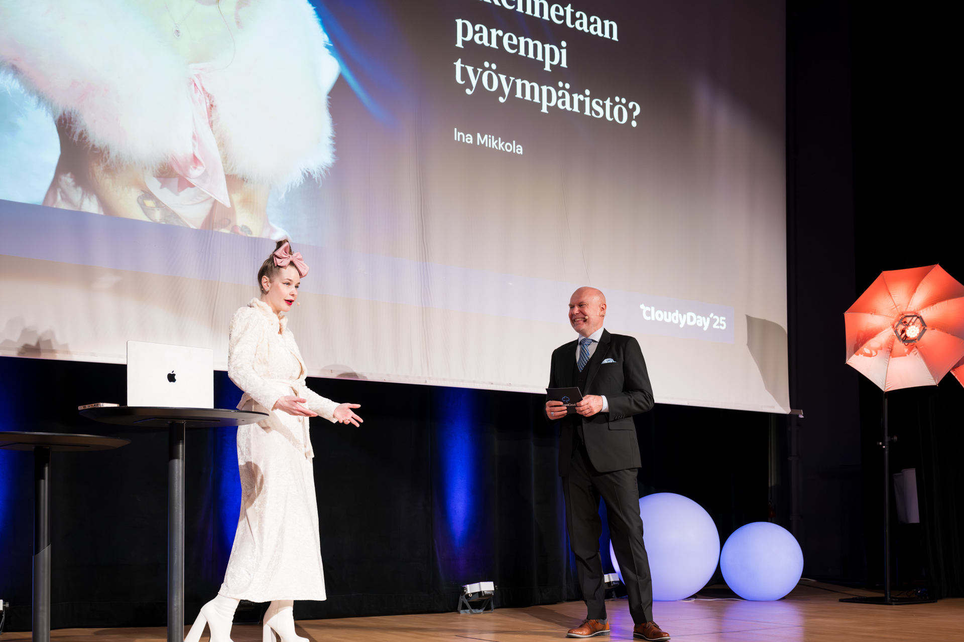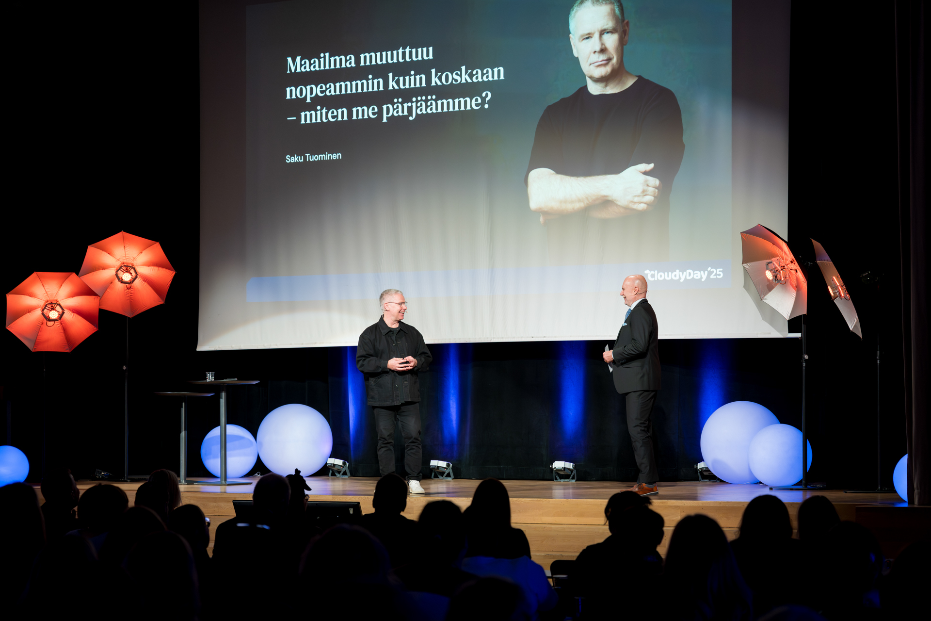 Cloudy Dayssa kuultiin inspiroivia näkökulmia työn ja tulevaisuuden risteyskohdista. Ina Mikkola puhui yksilöllistyvästä työelämästä ja haastoi rohkeasti vanhoja valtarakenteita. Tiina Rolig toi tekoälyn ihmiskeskeisen hyödyntämisen konkreettisesti esiin ja jakoi malleja johtamiseen muutoksen keskellä. Saku Tuominen tarjosi oivalluksia siitä, miten voimme ajatella uudella tavalla, johtaa viisaammin ja rakentaa kestävää menestystä. Johanna Pystynen puolestaan käsitteli strategista osaamista ja sen johtamista jatkuvassa muutoksessa.