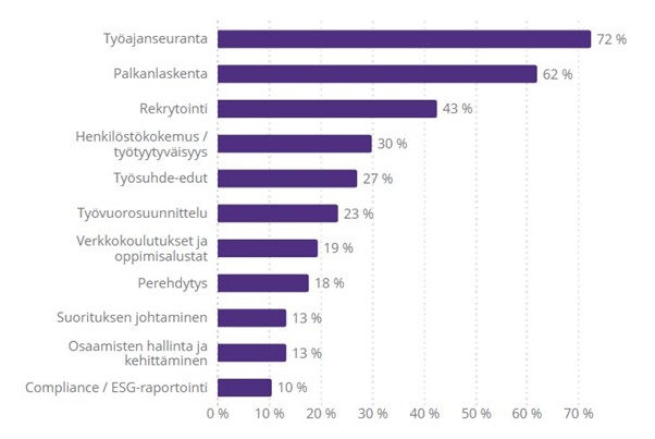 Työajanseuranta, palkanlaskenta ja rekrytointi koetaan parhaiten toimiviksi palveluiksi