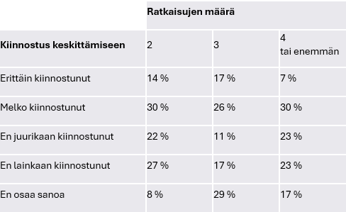Kiinnostus ratkaisujen keskittämiseen